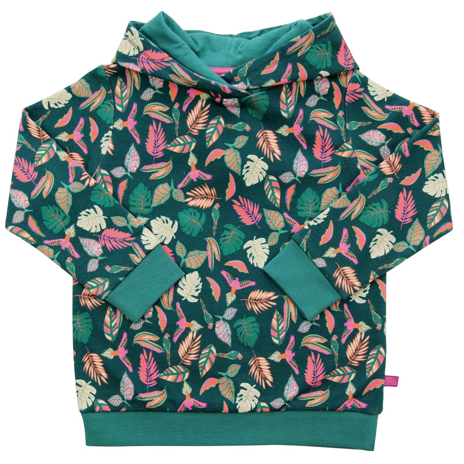 Hoodie Sweatshirt Papageiendruck in dark smaragd-fuchsia