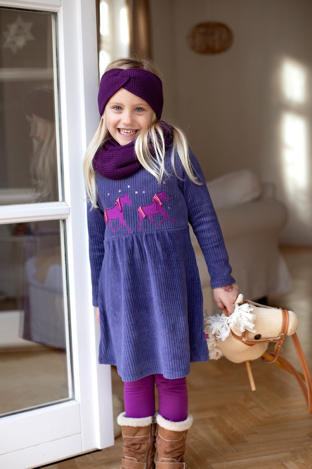 Kleid Velvet rib Pferdeapplikation in dark cobalt