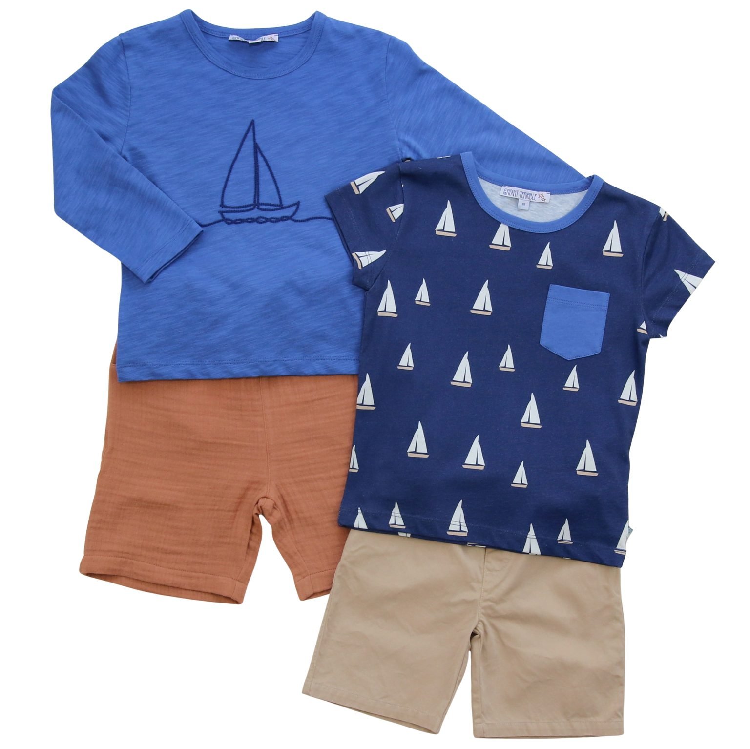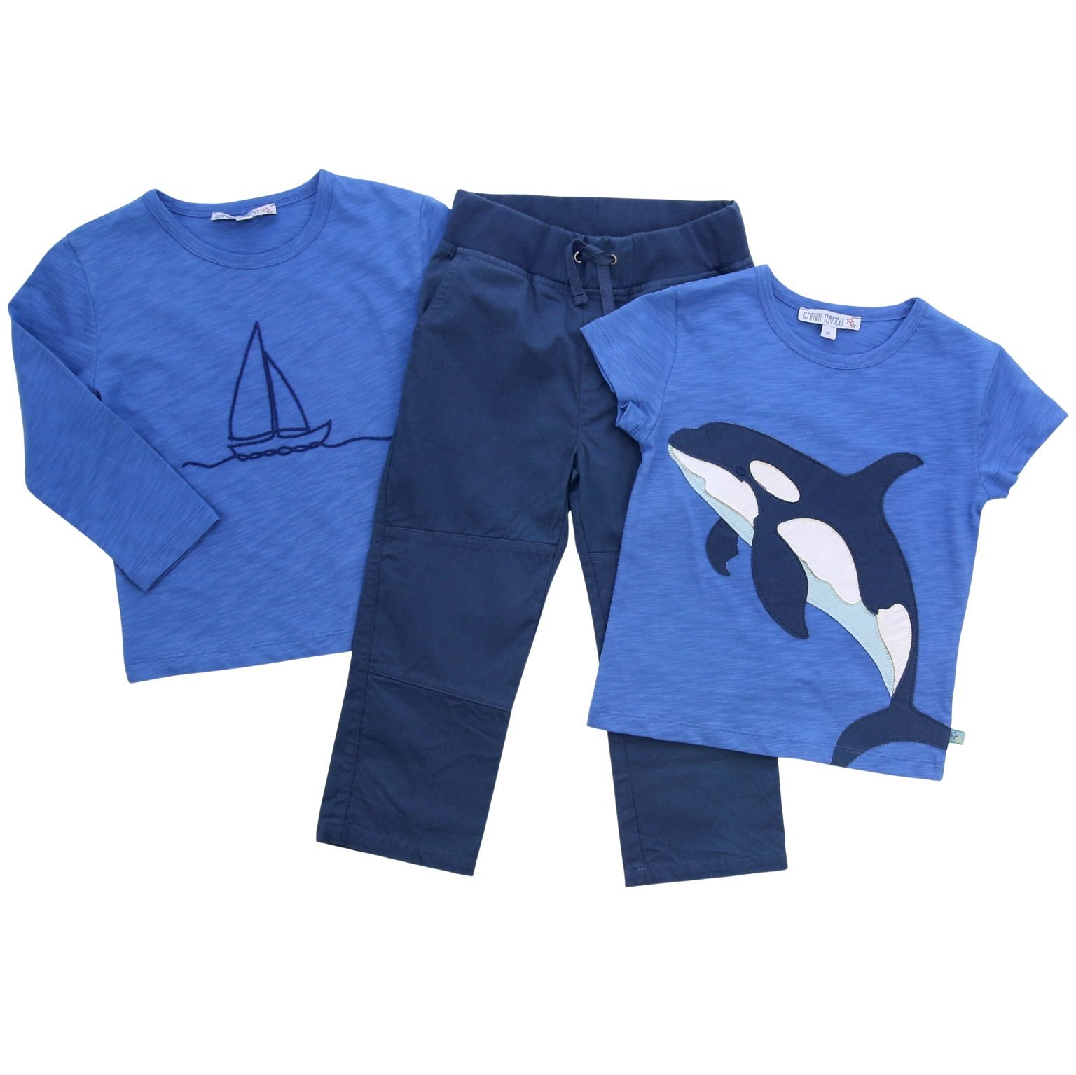 Langarmshirt mit Segelbootstickerei in sky blue