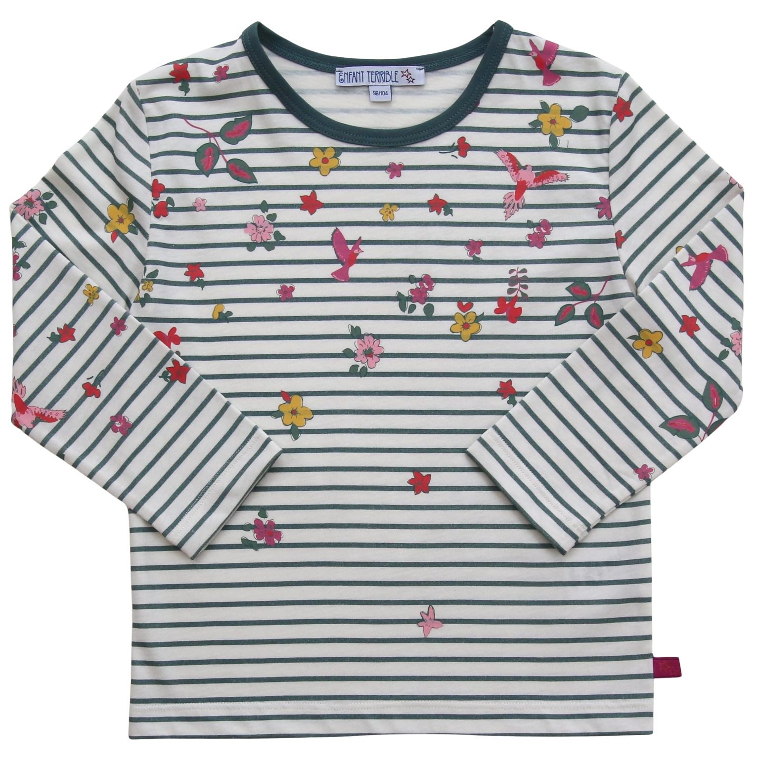 Langarmshirt mit Streifen- und Blumendruck in white-sea green