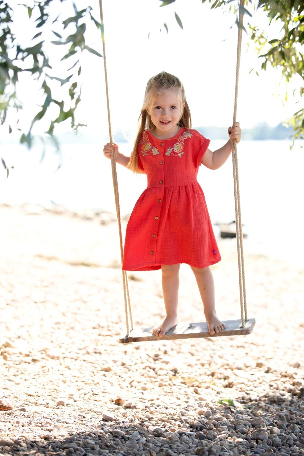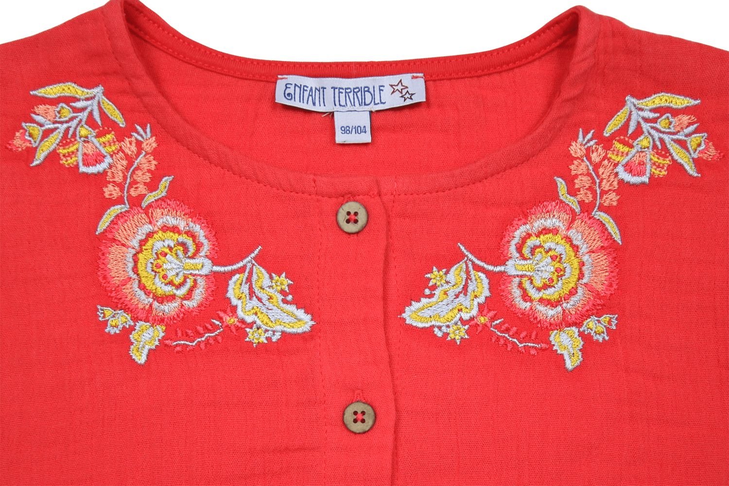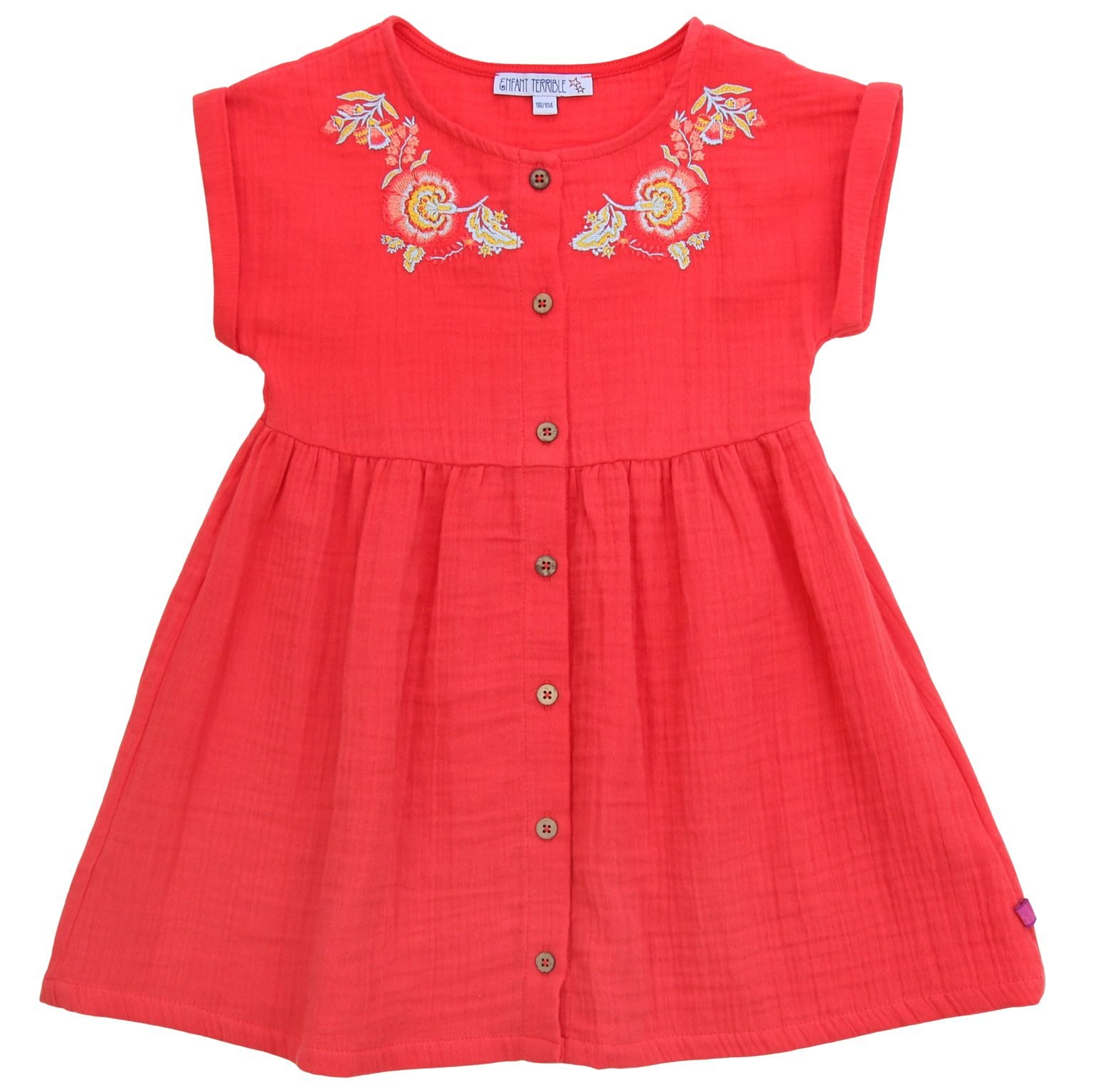 Musselin Kleid mit Knöpfen und Stickerei in tomato