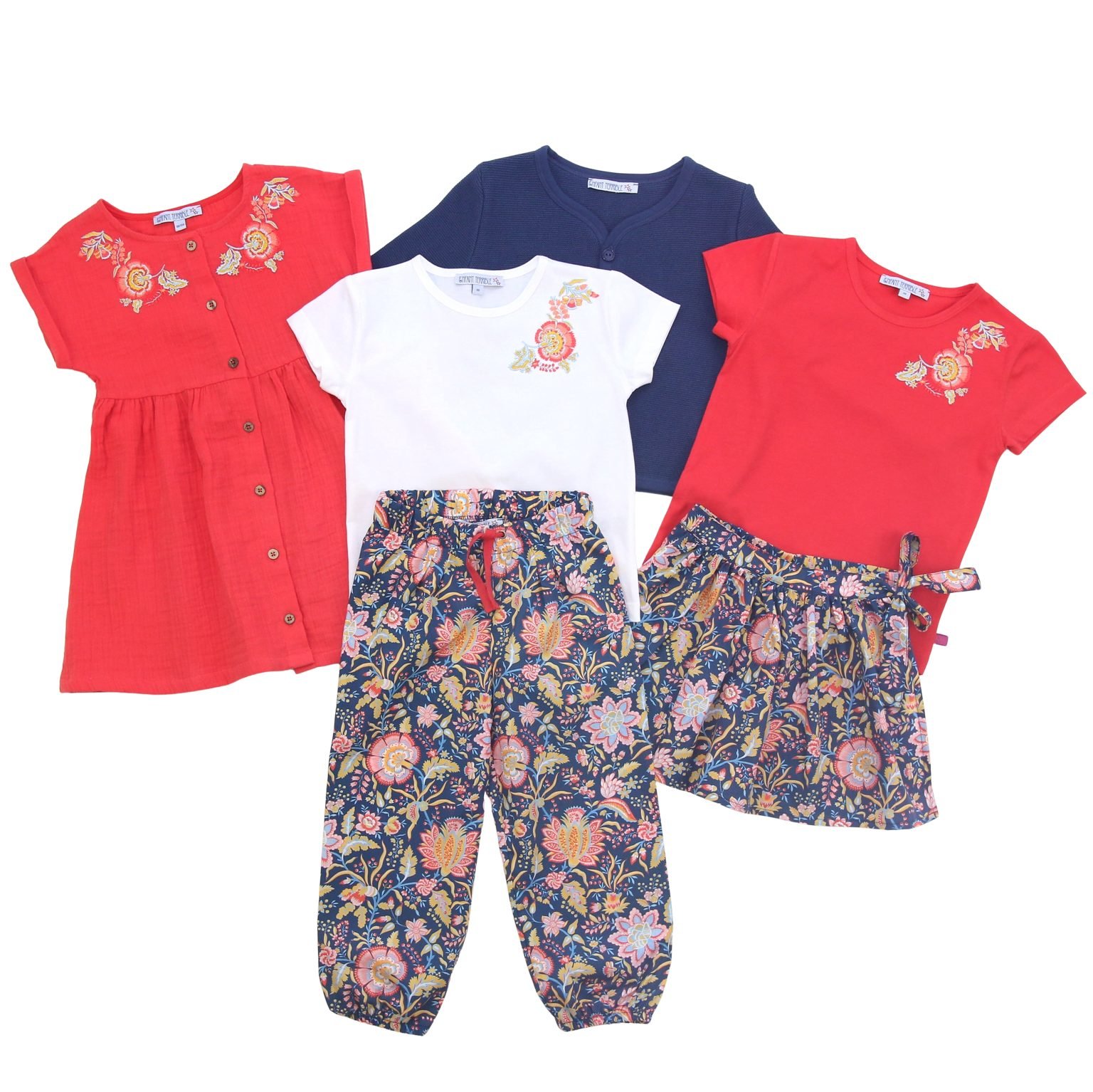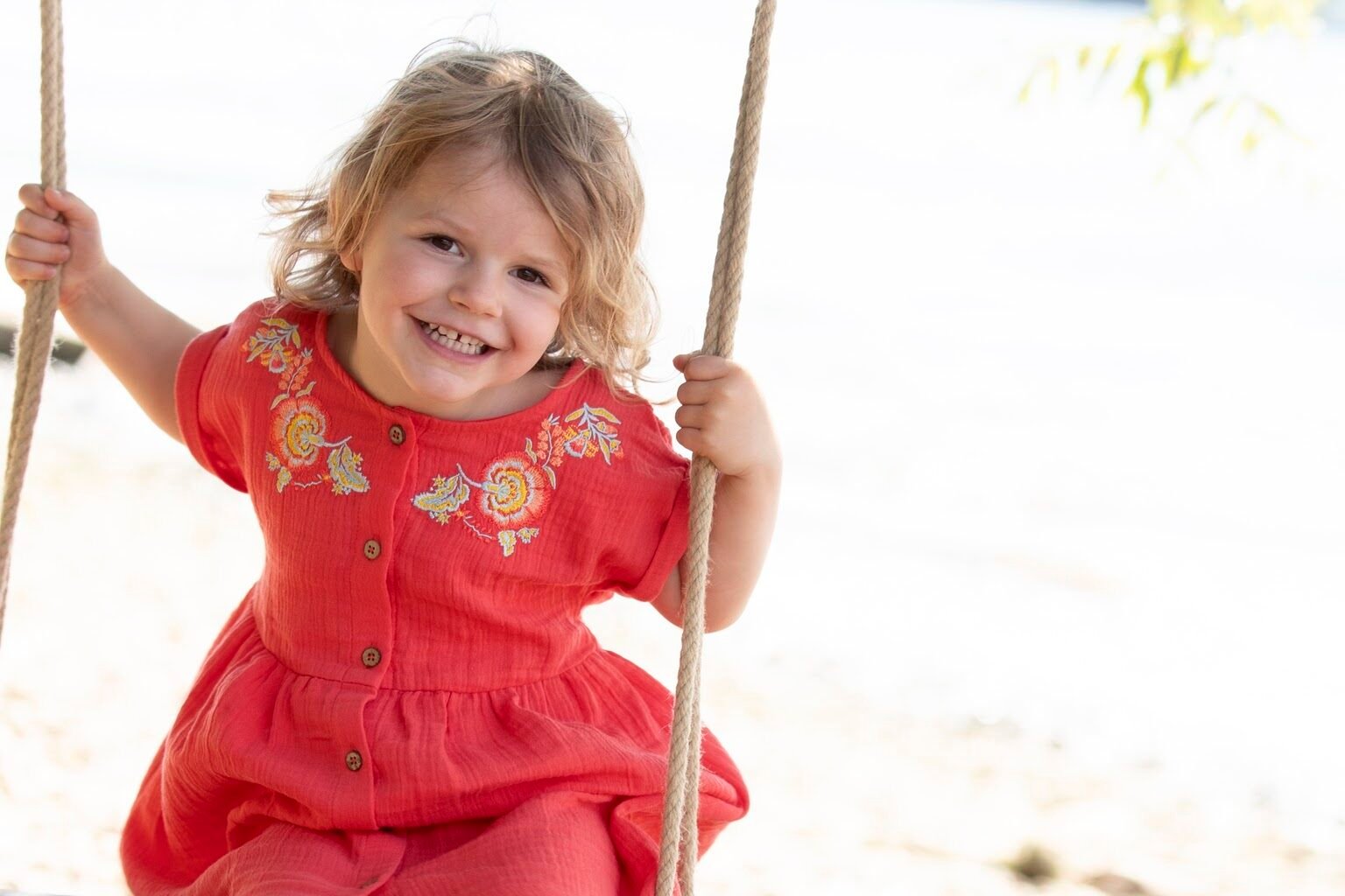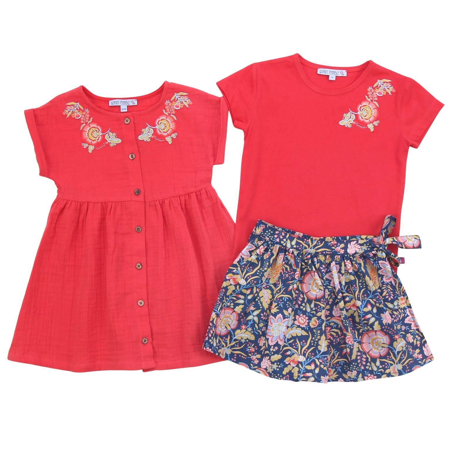 Musselin Kleid mit Knöpfen und Stickerei in tomato