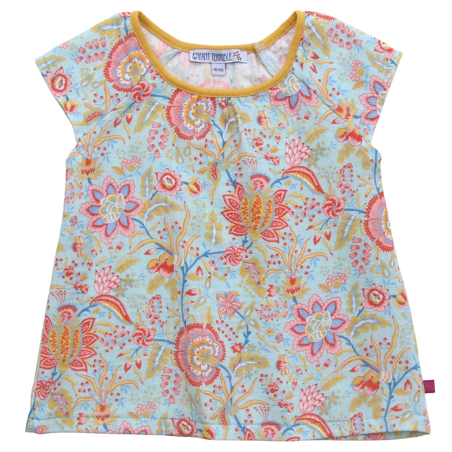 Musselin Top mit Paisleydruck in pale jade-tomato