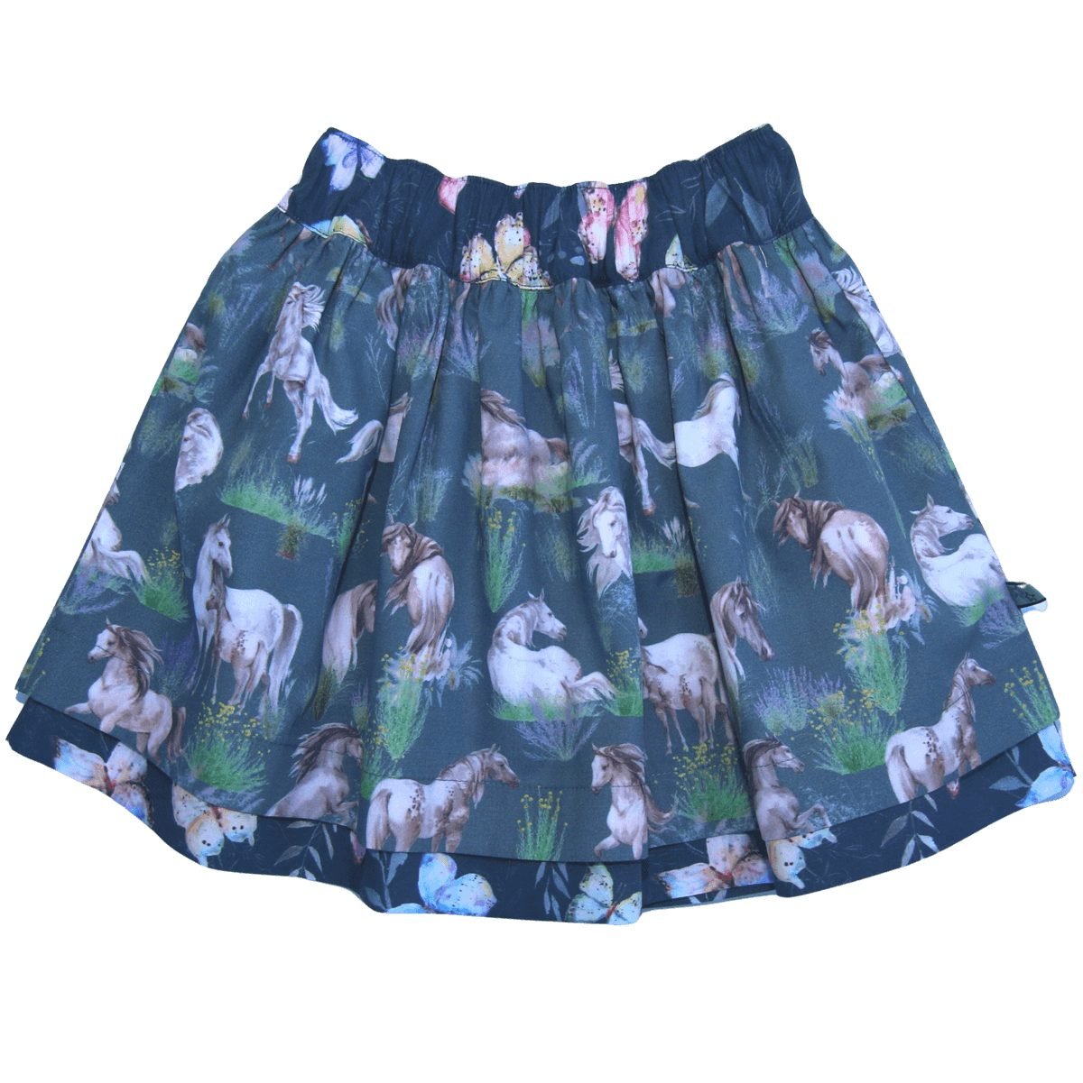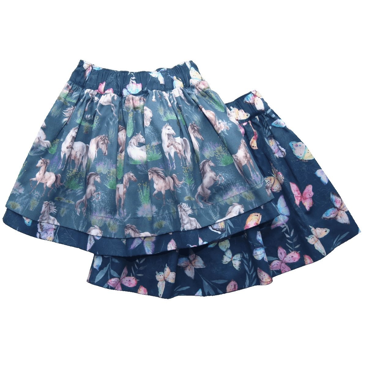 Wenderock mit Pferde- und Schmetterlingsdruck in steel blue- dark petrol